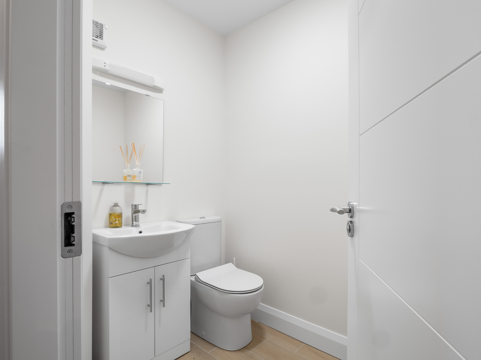 Upstairs, you’ll find two comfortable double bedrooms, both en-suites for added privacy and ease. A separate WC is located on the ground floor for convenience.