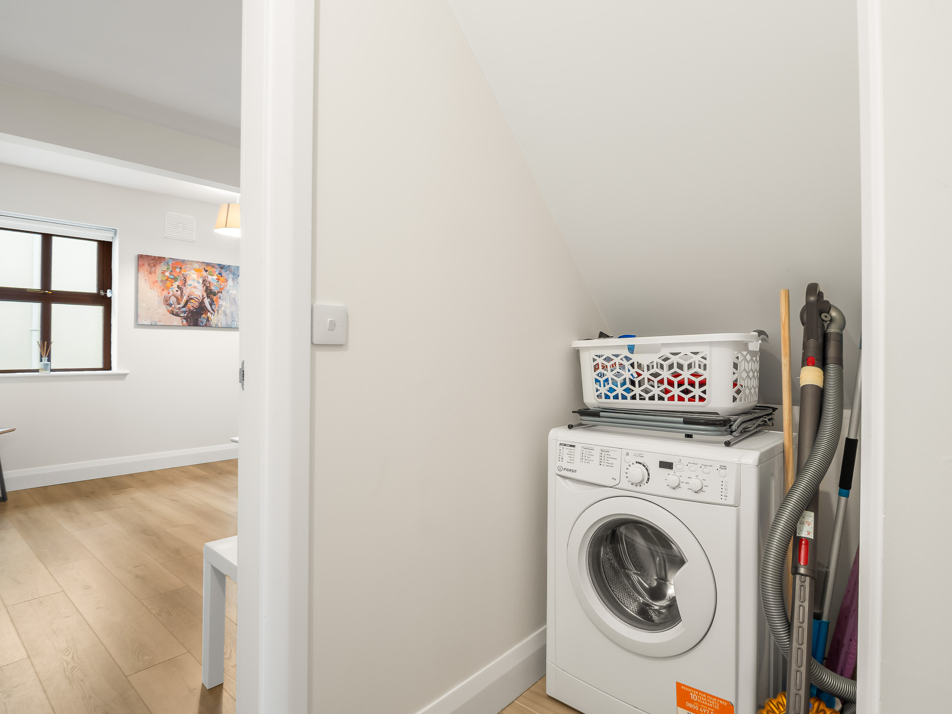 There is a huge laundry room with a washing machine, clothes horse, ideal area for storing wet gear.