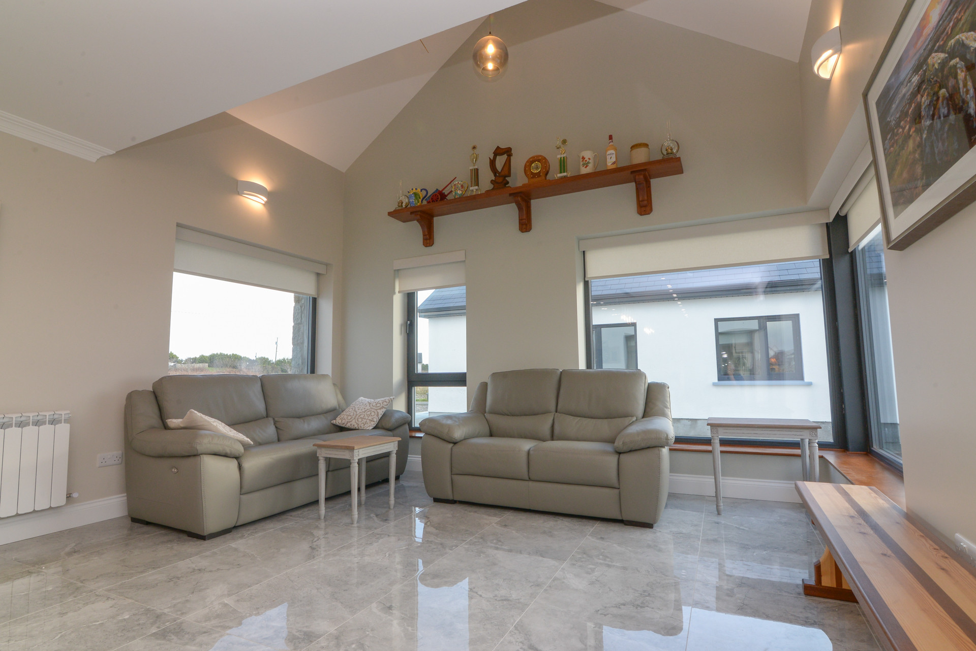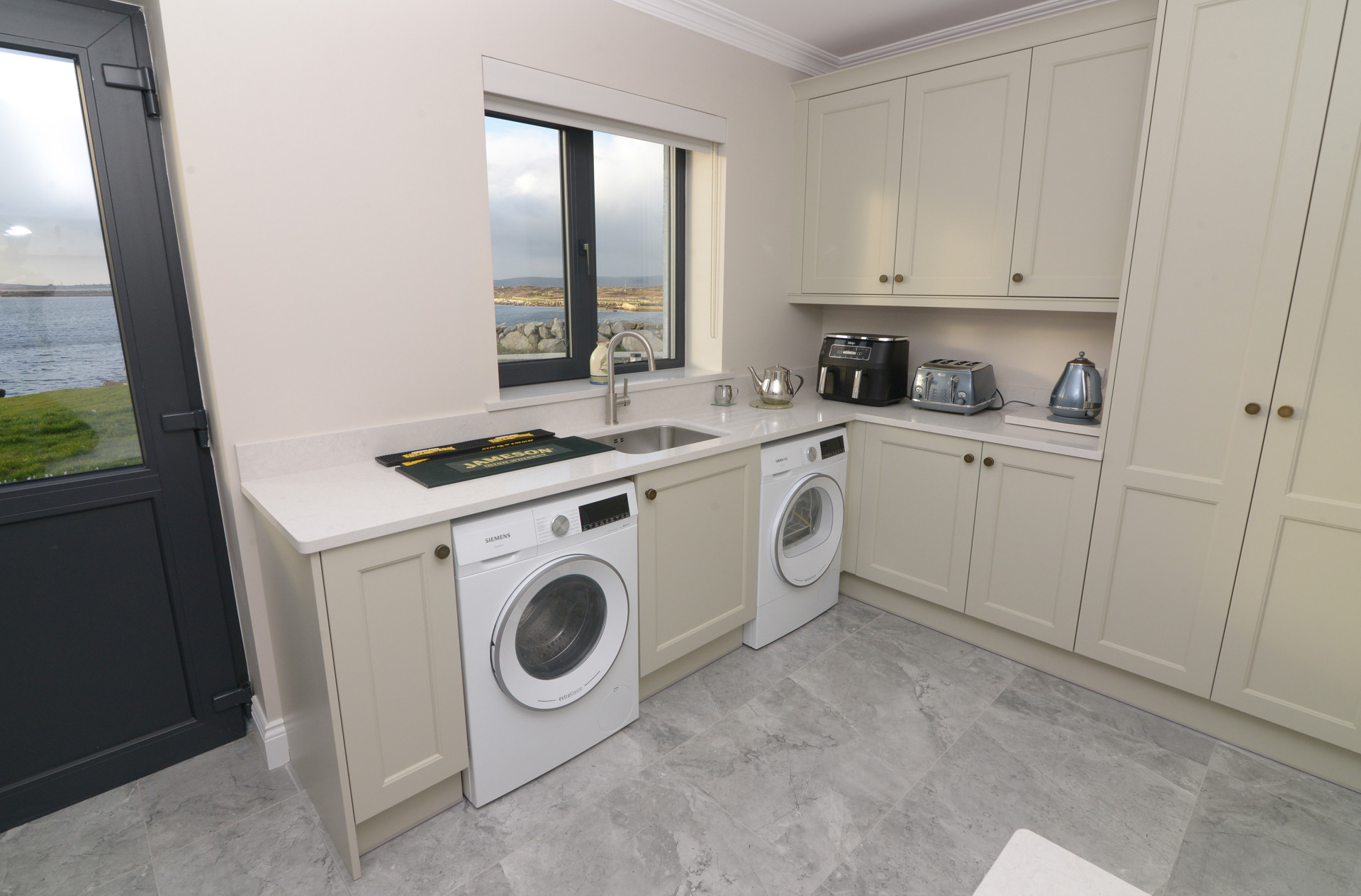 Set in a peaceful corner of Carraroe overlooking the glistening waters of St Thomas Bay, this newly built four-bedroom home is a masterpiece of modern coastal living. Designed with luxury and light at its heart, it offers an exceptional stay for families, friends, or groups seeking style, comfort, and space in one of Connemara’s most captivating settings.