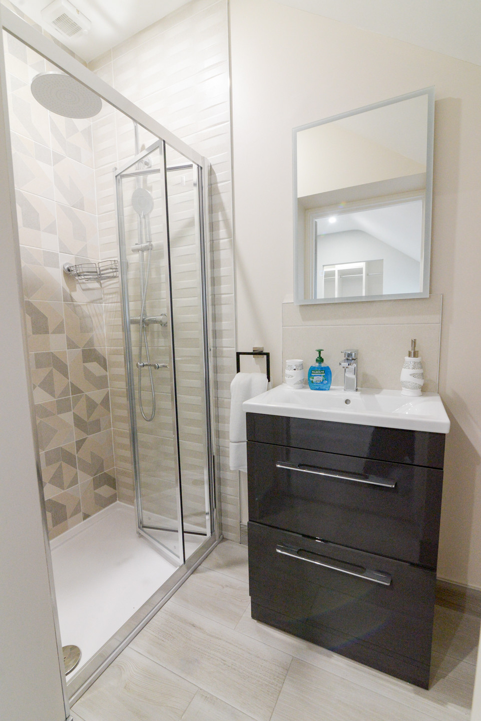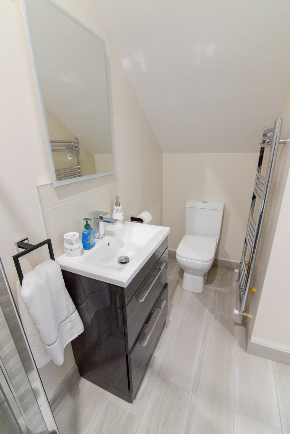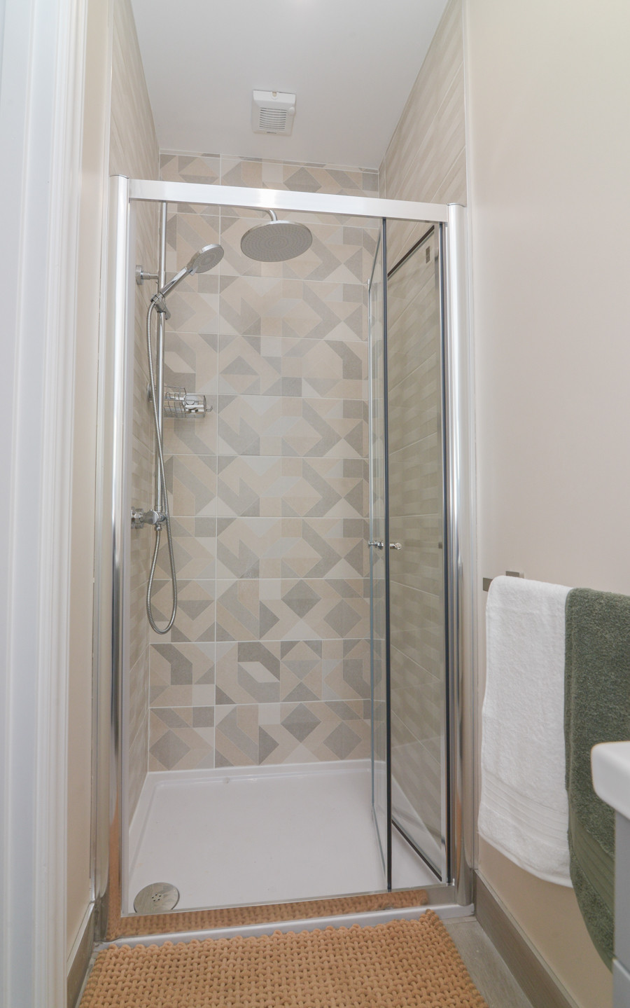 Beside it is a colourful twin bedroom, also with dual aspect views and an ensuite bathroom – kids will love it. Complete with Lego, Fuzzball table and family board games.