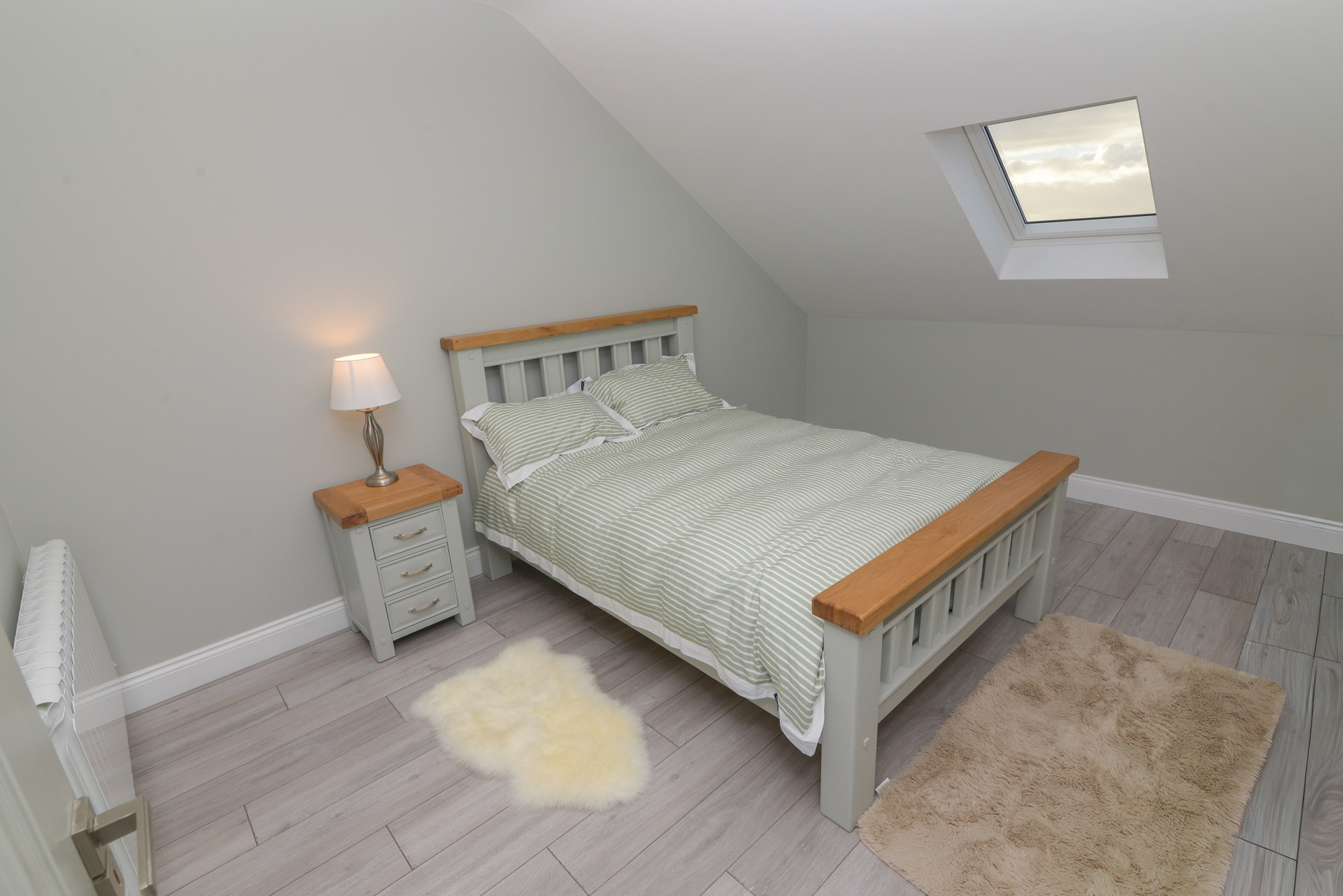 Beside it, is the only bedroom on this level, with a double bed and generous wardrobe space.