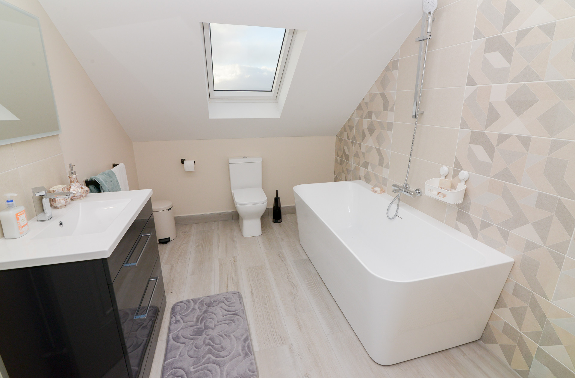 Off the main corridor back to the entrance hall, a family bathroom boasts a super double-ended, extra deep, Corian slipper bath.