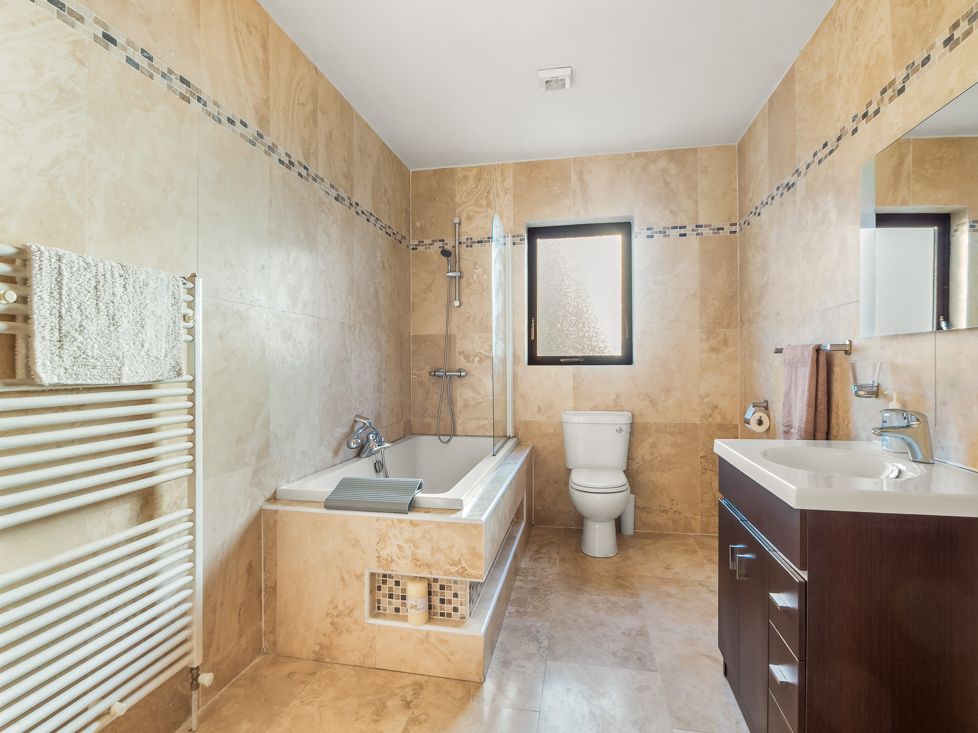 The entire property is based on ground level, enter through the tiles hallway