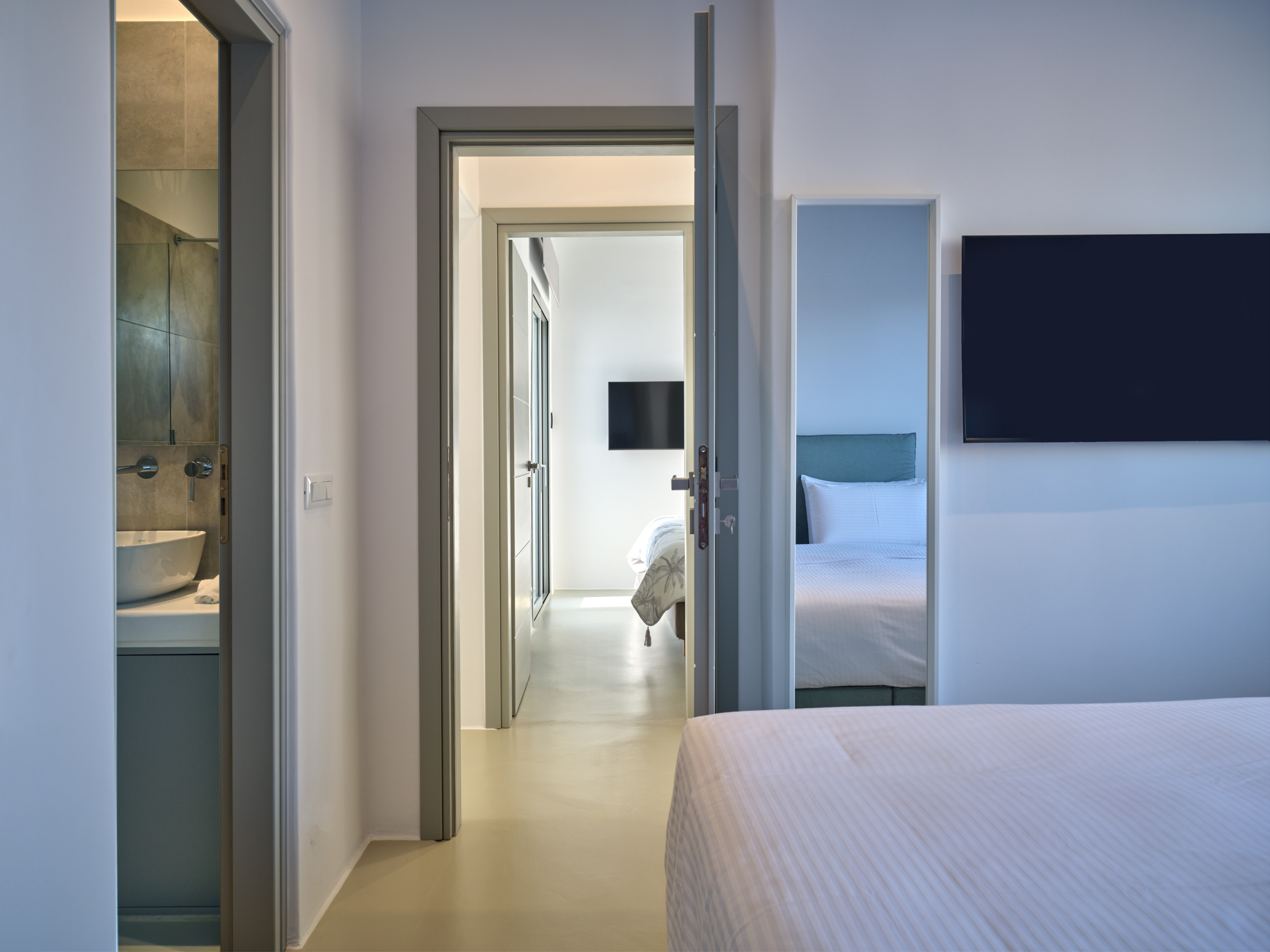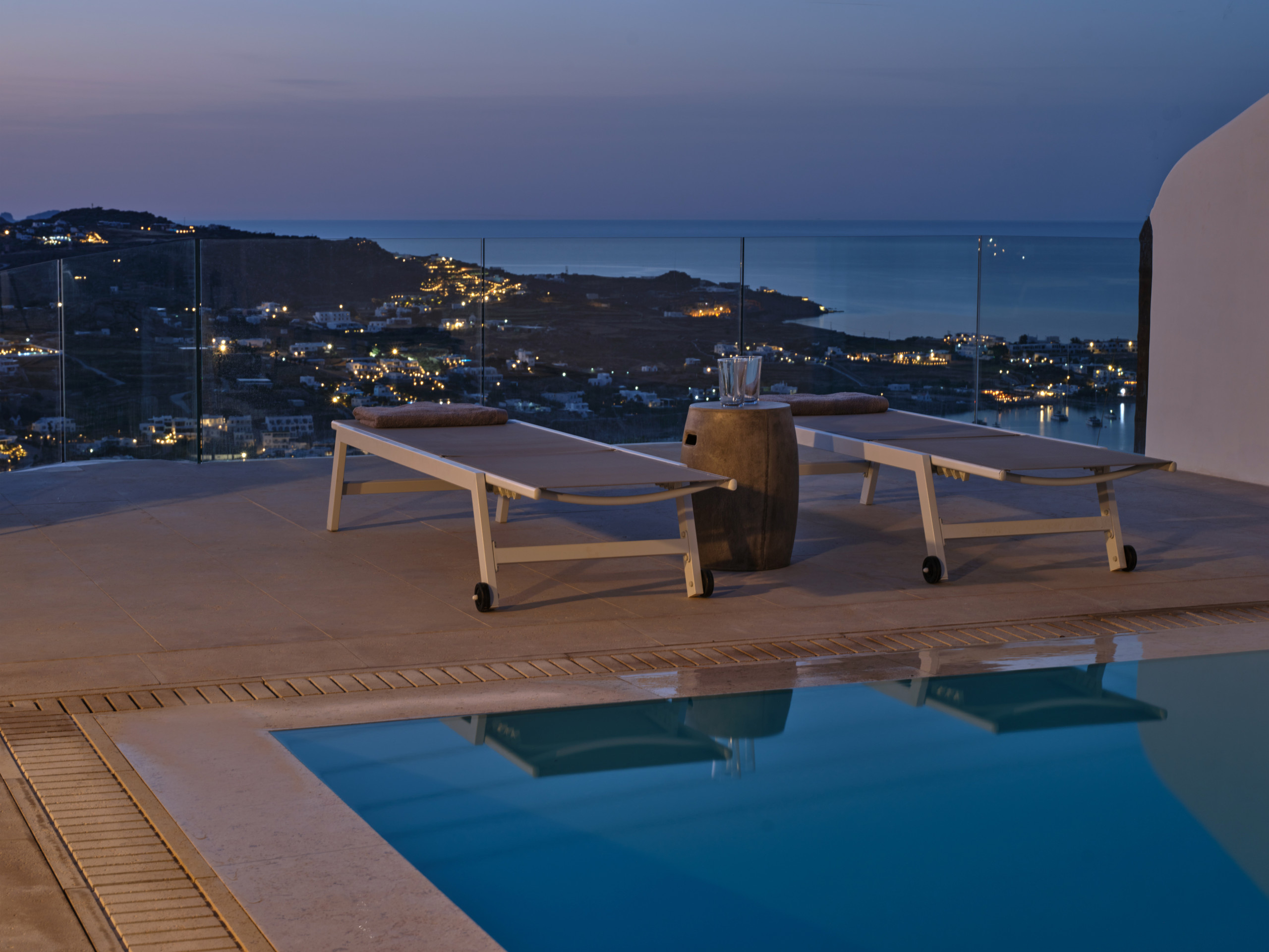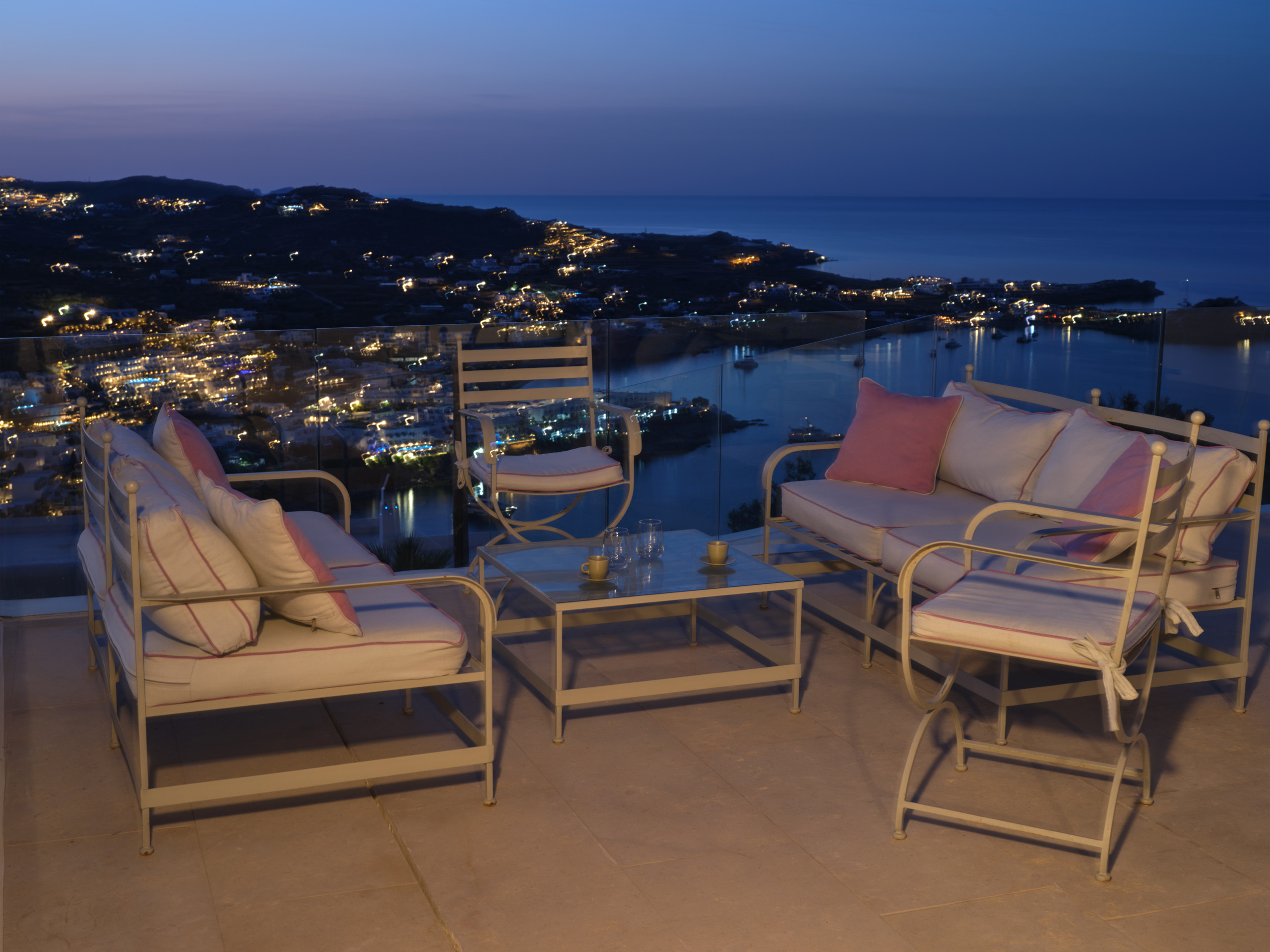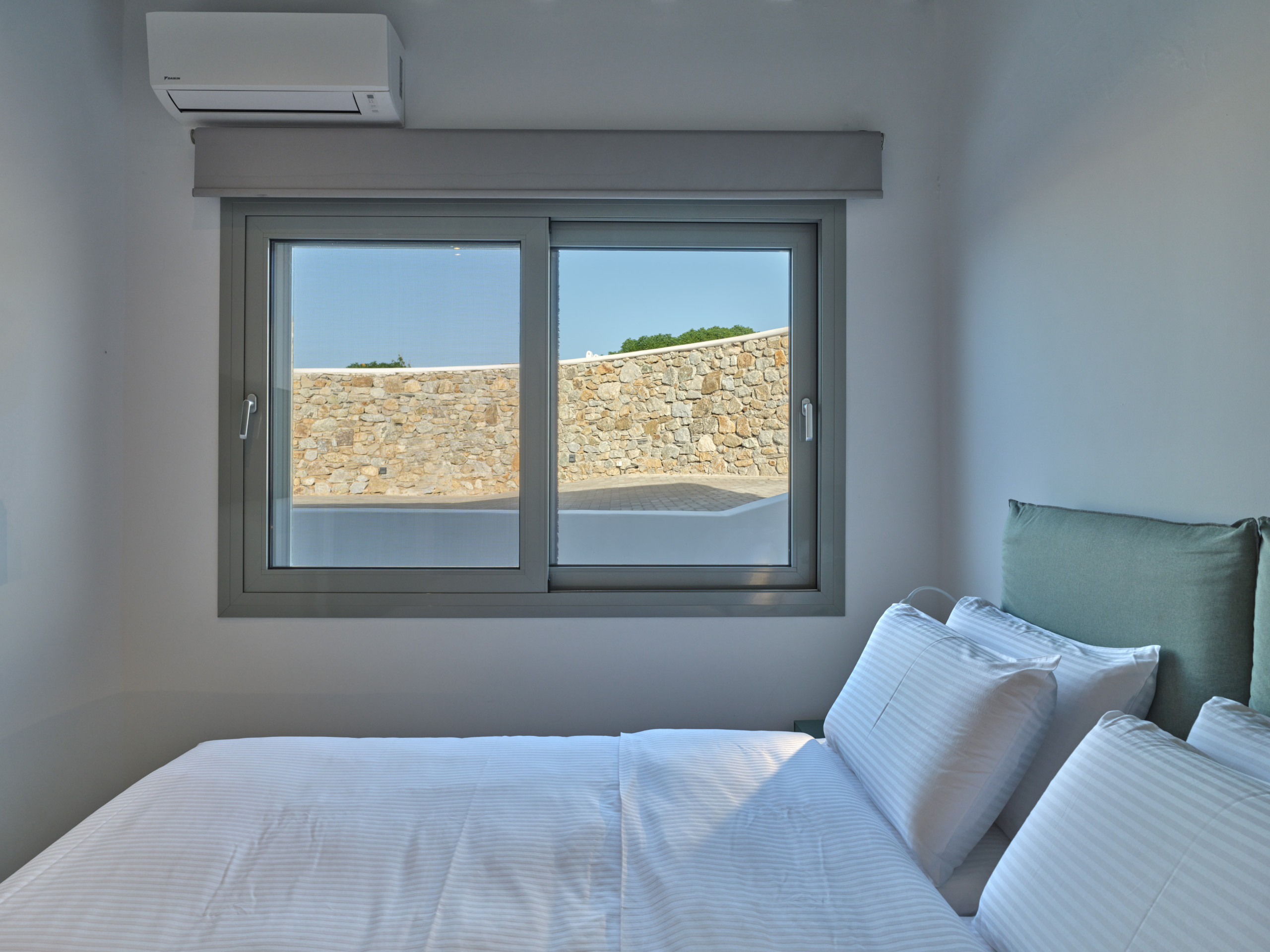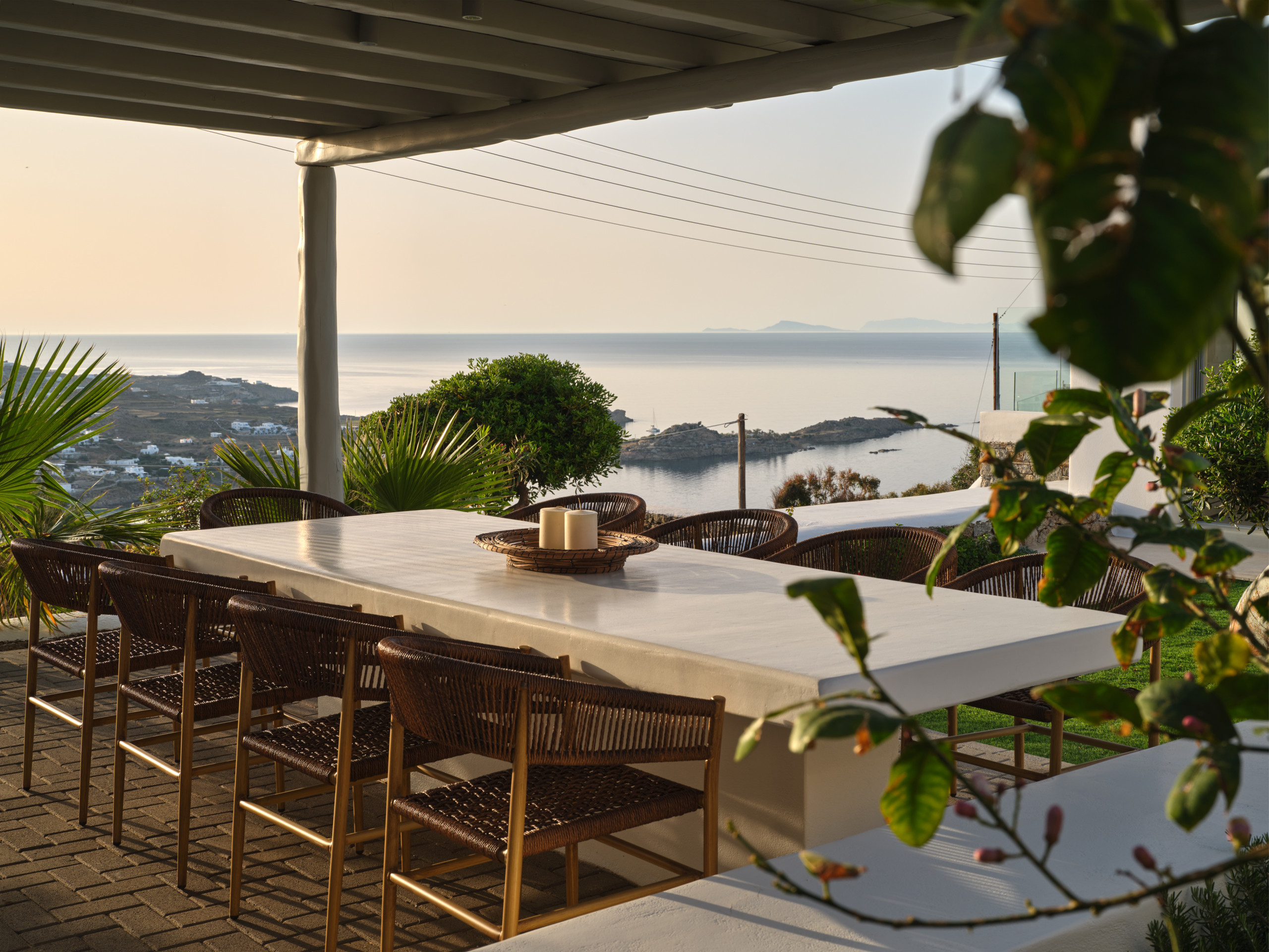 Wake up to the whispers of the Aegean breeze, greeted by panoramic views of the Mykonian landscape and the boundless Aegean blue.