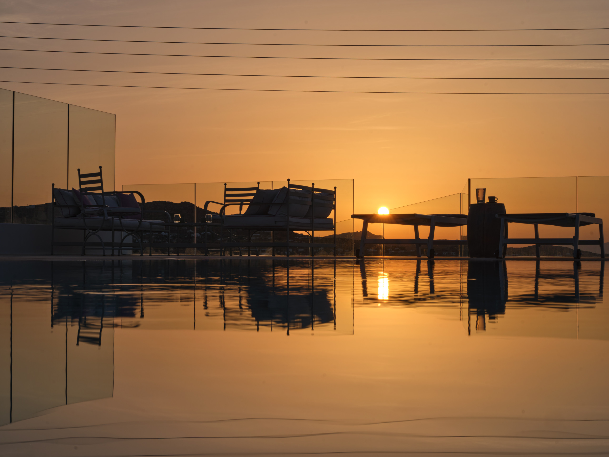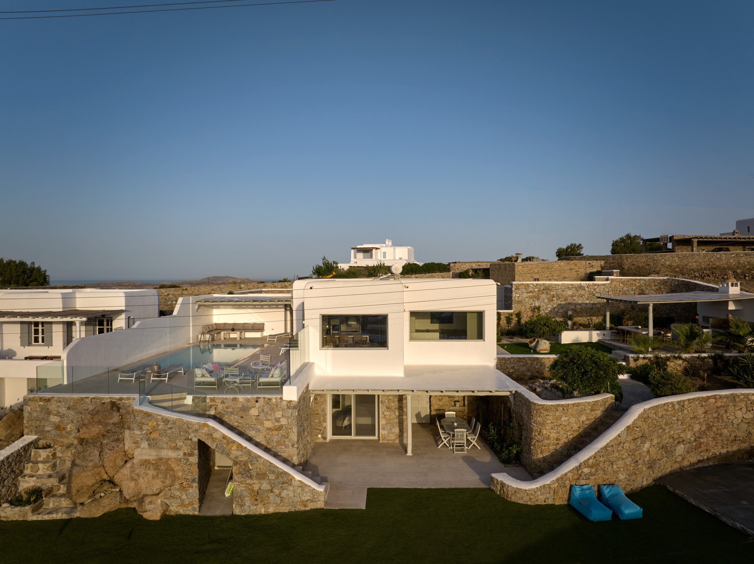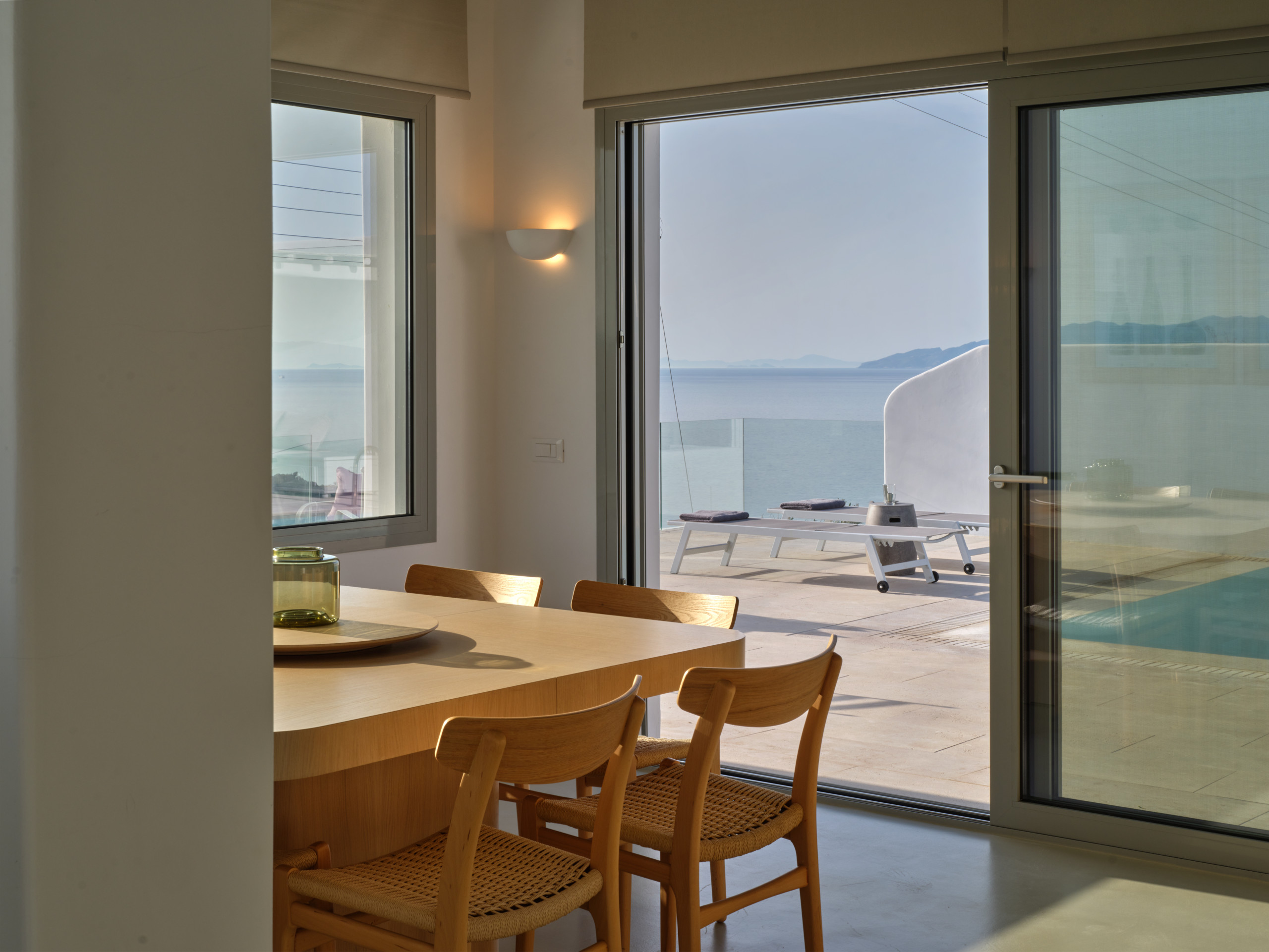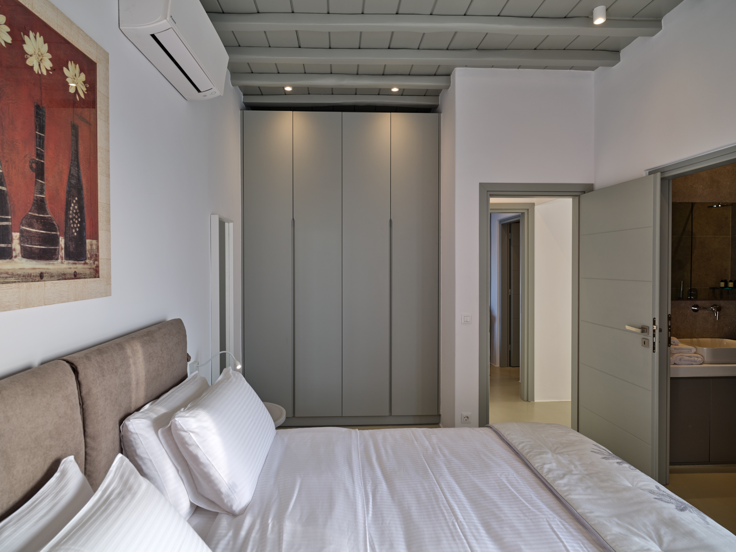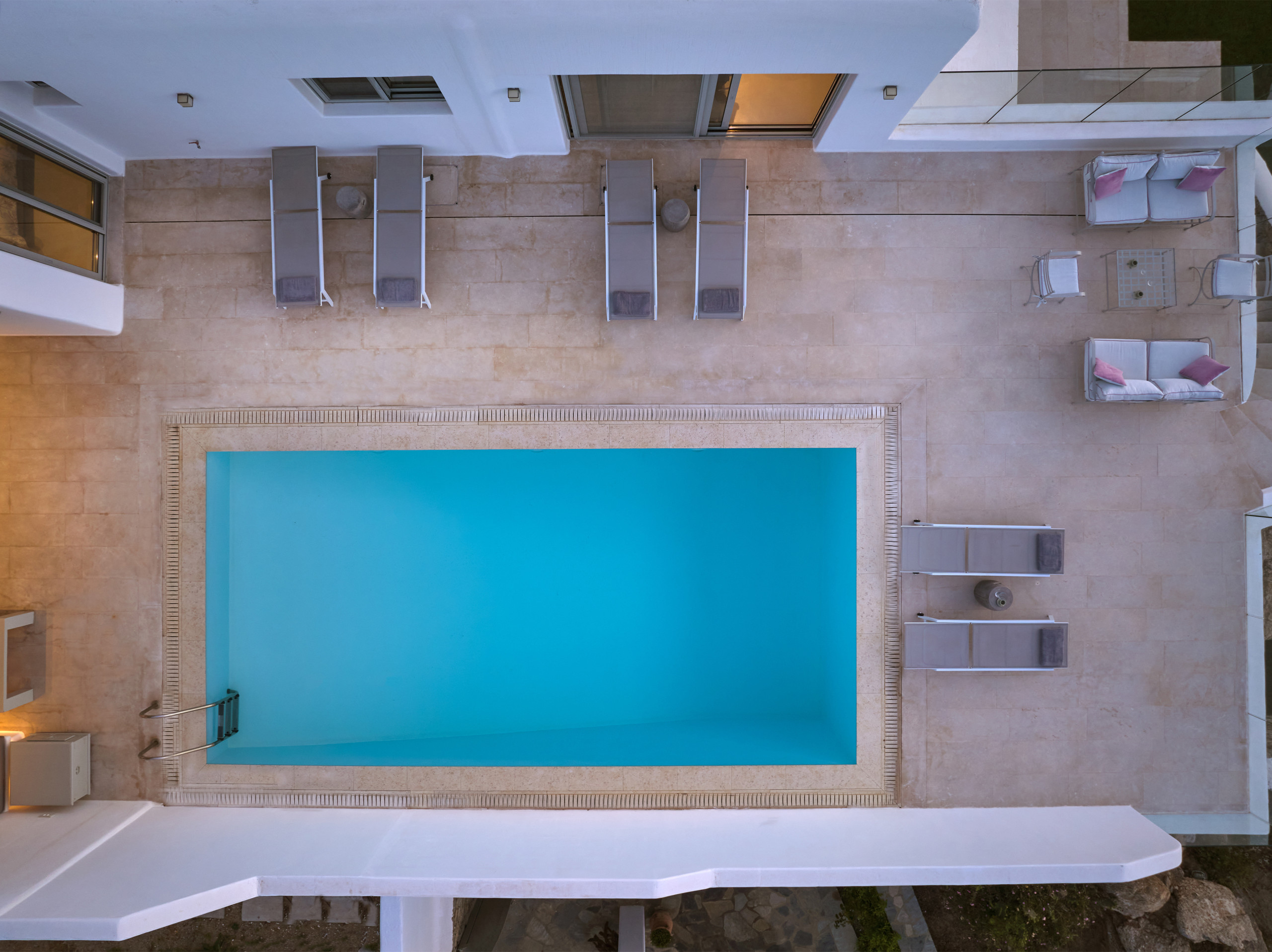 Wake up to the whispers of the Aegean breeze, greeted by panoramic views of the Mykonian landscape and the boundless Aegean blue.