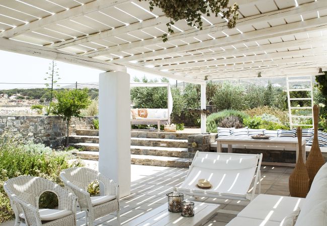 A gorgeous and deceptively large eclectic villa, set on a hill near a wonderful fishing village. Our home has panoramic views over Naoussa bay.